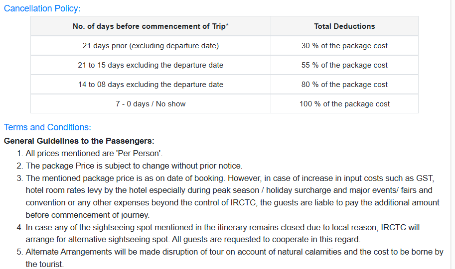 - ట్రావెల్ ఇన్సూరెన్స్ మరియు IRCTC టూర్ ఎస్కార్ట్ సౌకర్యం.